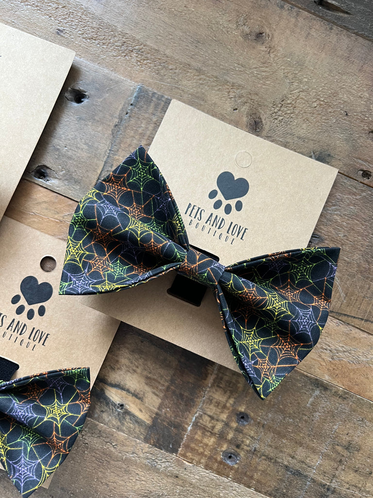 Bow Ties Velcro around your dog or cats collar. You can cut the velcro to fit the collar better.