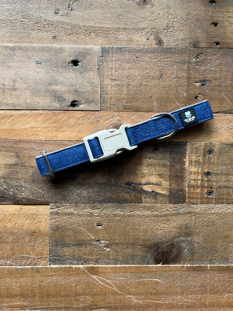 Organic Hemp Dog Collars are made with Hemp webbing and Hemp fabric layer. Outside Dark Blue inside beige. Collars come in 4 different sizes and each size is adjustable. Extra Small and Small Collars are 1/2 Inch wide. Medium and Large Collars are 1 Inch Wide. The perfect match with our Organic Hemp Leashes and Poop Bag Holders (Sold Separately).