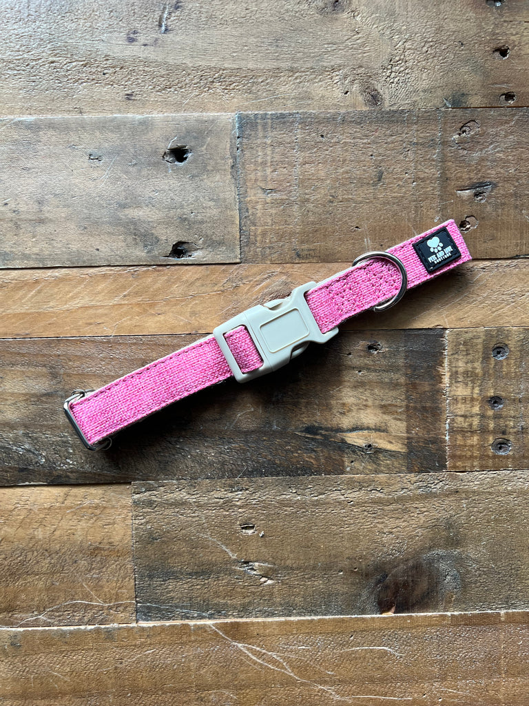 Organic Hemp Dog Collars are made with Hemp webbing and Hemp fabric layer. Outside Pink, inside beige. Collars come in 4 different sizes and each size is adjustable. Extra Small and Small Collars are 1/2 Inch wide. Medium and Large Collars are 1 Inch Wide. The perfect match with our Organic Hemp Leashes and Poop Bag Holders (Sold Separately).