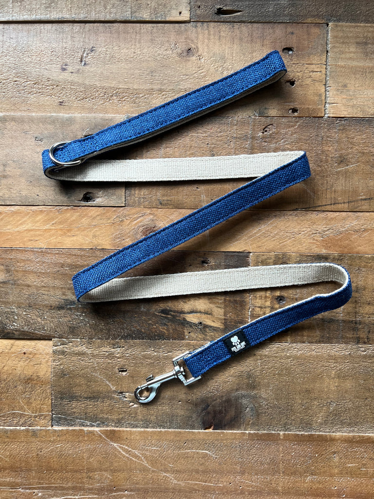 These Organic Hemp Dog Leashes are the Perfect Beach Look. Leashes come in 2 sizes. The Small Leash is 4 feet in length and come with a smaller hook. Large Leash is 5 feet and Length. Features a 360 Degree Tangle Free Hook and Metal D-Ring to Hold Doggie Poop Bag Holders or other small accessories. Dark Blue on one side, Beige on the other side.