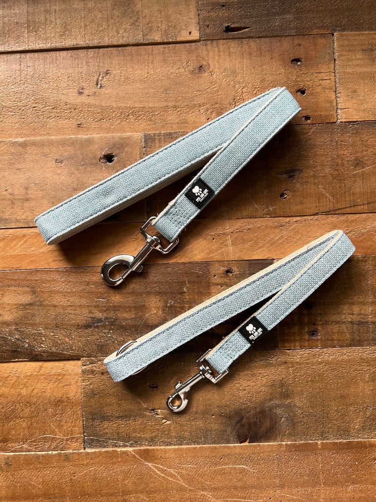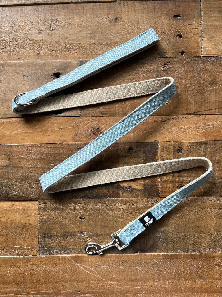 These Organic Hemp Dog Leashes are the Perfect Beach Look. Leashes come in 2 sizes. The Small Leash is 4 feet in length and come with a smaller hook. Large Leash is 5 feet and Length. Features a 360 Degree Tangle Free Hook and Metal D-Ring to Hold Doggie Poop Bag Holders or other small accessories. Light Blue on one side, Beige on the other side.