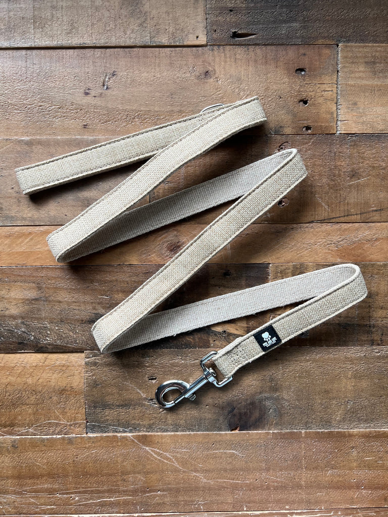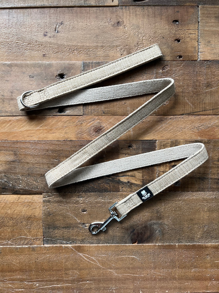 These Organic Hemp Dog Leashes are the Perfect Beach Look. Leashes come in 2 sizes. The Small Leash is 4 feet in length and come with a smaller hook. Large Leash is 5 feet and Length. Features a 360 Degree Tangle Free Hook and Metal D-Ring to Hold Doggie Poop Bag Holders or other small accessories. Tan on one side, Beige on the other side.