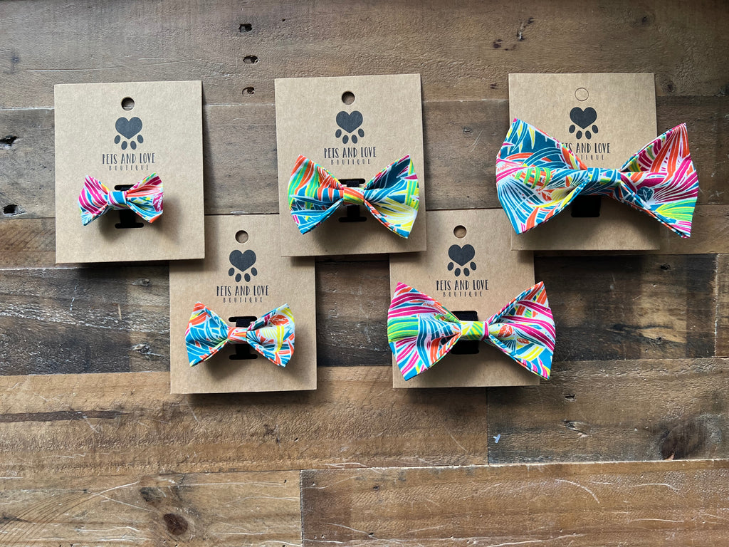 Each Bow Tie is Unique! Bow Tie may look different then pictured because of the print. Bow Ties Velcro around your dog or cats collar. You can cut the velcro to fit the collar better.